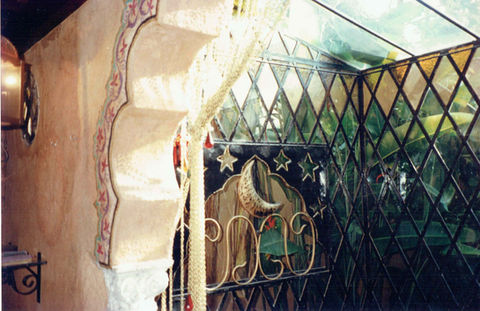 Refletia as influências das viagens de Simone à Índia, Nepal e Europa, com fontes, arcos indianos, árabes, italianos, paredes pintadas à mão e vitrais antigos, que compunham um cenário, despertando a curiosidade de quem passava por sua fachada excêntrica, sem placa, com acesso apenas por campainha.